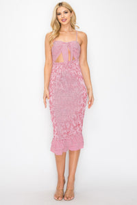 Feminine and effortlessly chic, this checker front knot smocked midi dress is the perfect blend of comfort and style. Crafted from a soft and stretchy polyester-spandex blend, it features a flattering smocked bodice that hugs your figure while allowing easy movement. The eye-catching checker print adds a trendy, modern vibe, and the front knot detail enhances the neckline with a touch of playful elegance. Designed in a midi length for versatile wear, this dress transitions beautifully from day to night with just a change of accessories.