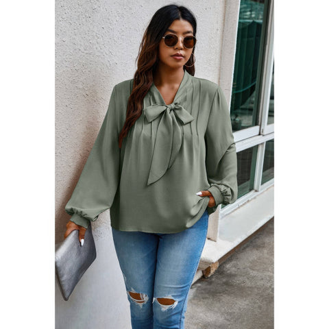 Plus Size Solid Ruched Knot Loose Fit Top