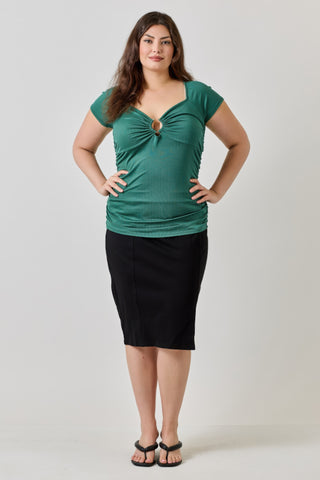 Plus Size Knit Rib Open Circle Trim Top Sale