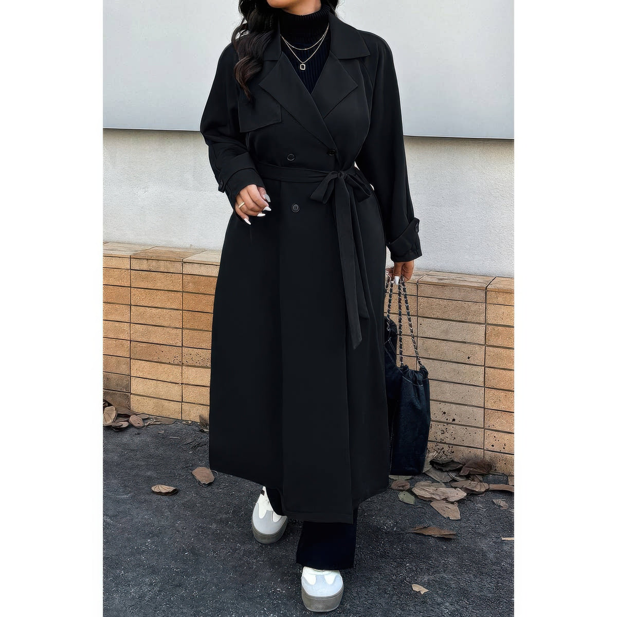 Stay warm and elegant in this plus-size double-breasted coat designed for both style and comfort. The stand collar adds a structured, modern touch, while the long-body cut provides a flattering, elongating silhouette. Crafted from a soft yet durable polyester-elastane blend, it offers warmth without bulk. Ideal for cold-weather outings, workdays, or city strolls, this coat transitions effortlessly from day to night. A timeless outerwear piece, it adds sophistication to any ensemble.